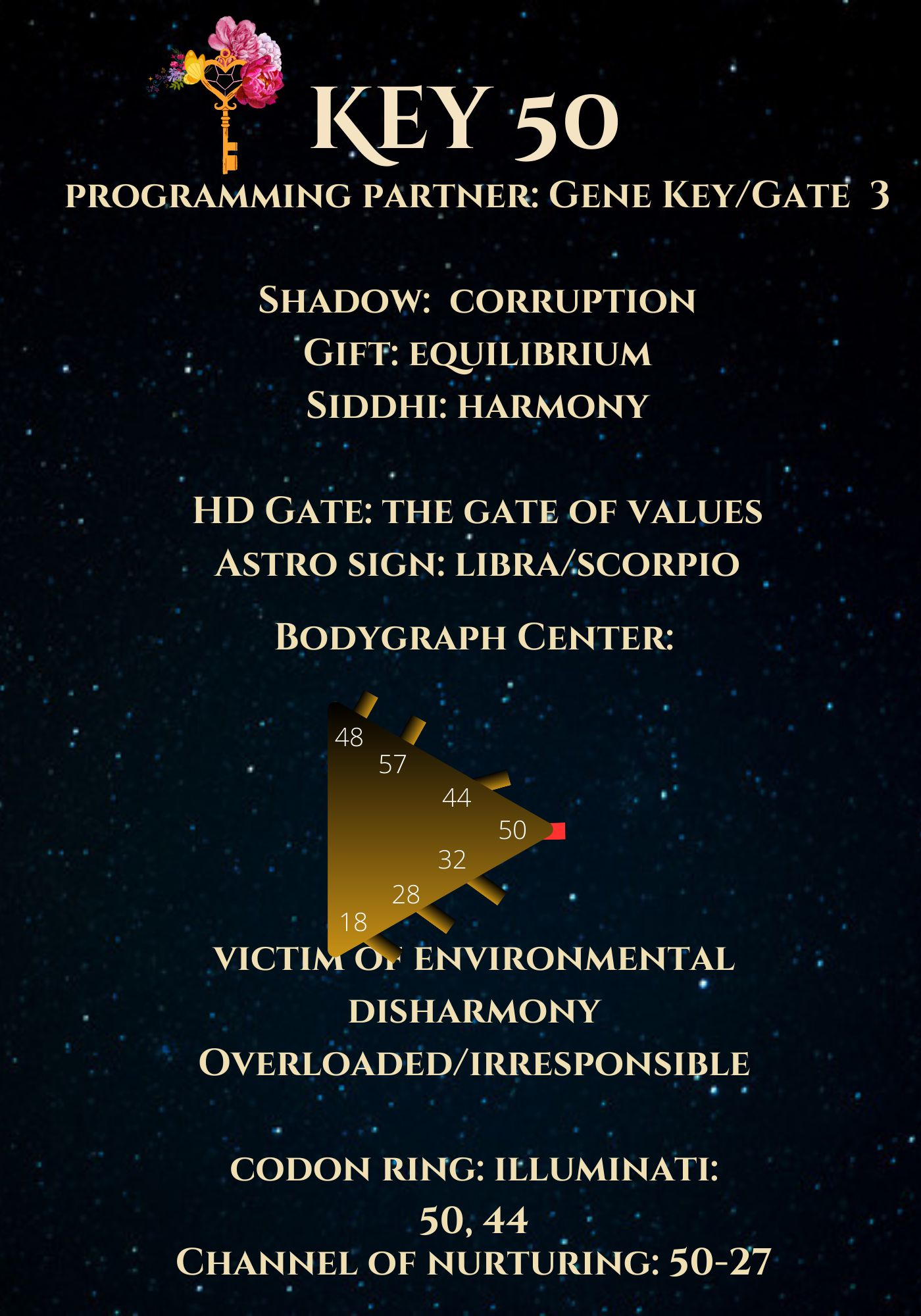 The 50th Siddhi, Harmony, represents the pinnacle of balance and unity within the Gene Key 50 journey. It embodies the perfect equilibrium achieved after balancing opposing forces, leading to a state of perpetual resonance and unity with the cosmos. This Siddhi harmonizes human awareness with celestial consciousness, dissolving feelings of separateness and revealing the underlying harmony of existence. It triggers profound transformations in individuals and society, catalyzing shifts towards higher states of being and new social structures. Ultimately, it guides humanity towards oneness with the divine, orchestrating a symphony of consciousness where each individual becomes an instrument, and harmony flows through all.