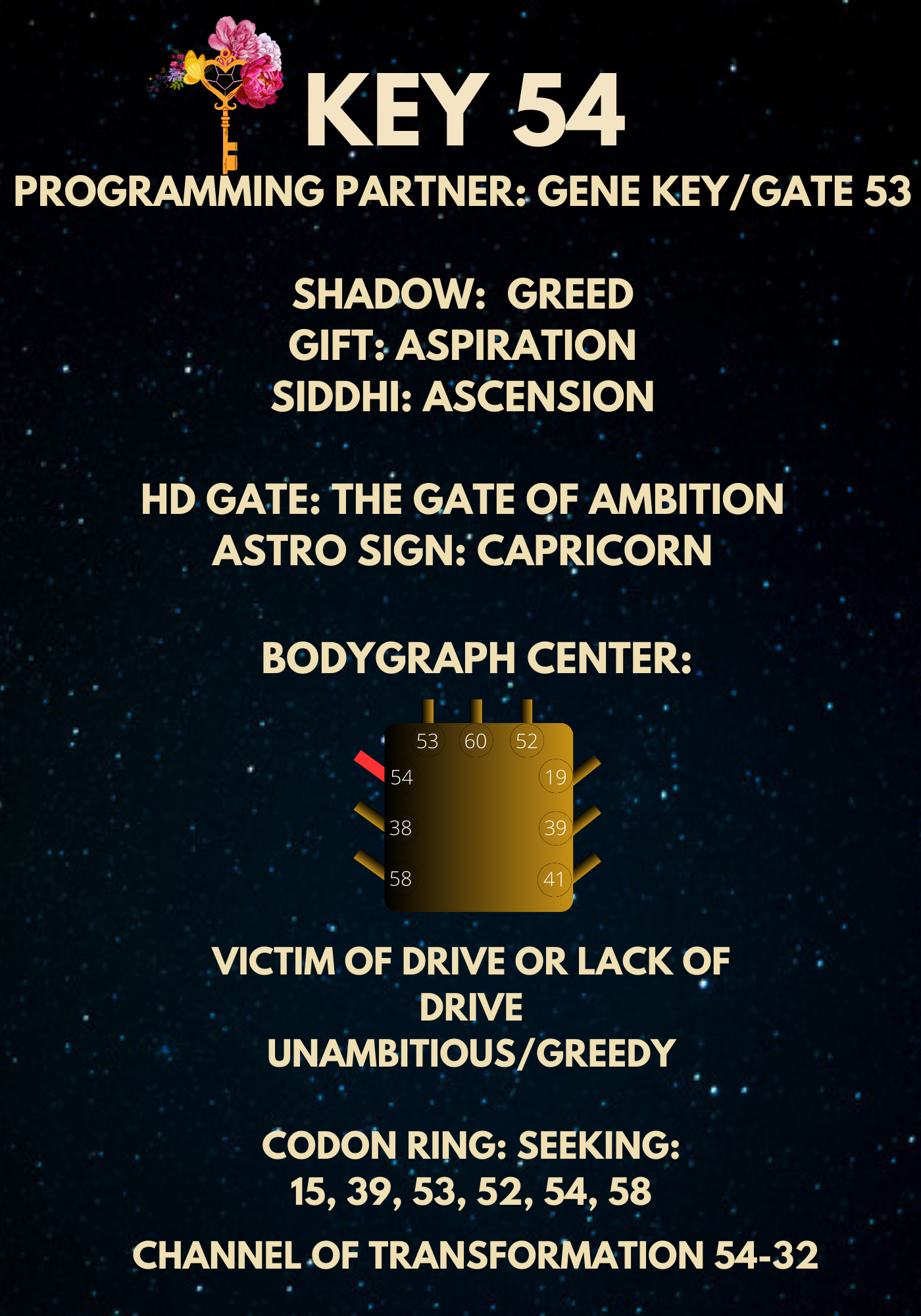 The 54th Shadow is about the urge to want more, which can turn into blind greed. Greed isn't necessarily bad; it's just part of human nature and helped early societies survive. However, when taken to extremes, it can harm individuals and the planet. At its core, greed is about accumulating material wealth, often tied to status symbols. It drives people to form relationships for personal gain, but this can lead to distrust. Greed lacks integrity and can't evolve into higher aspirations like genuine ambition can. While greed might lead to material success, it often leaves people feeling empty. Genuine ambition, on the other hand, seeks continual growth and may naturally transition into more spiritual aspirations. The 54th Gene Key is part of the Ring of Seeking in human DNA, which drives our evolutionary movement. At lower frequencies, it leads to a focus on material wealth, but at higher frequencies, it becomes a quest for meaning and purpose. While seeking material wealth isn't inherently wrong, it can lead to disappointment and prevent people from appreciating the present moment.